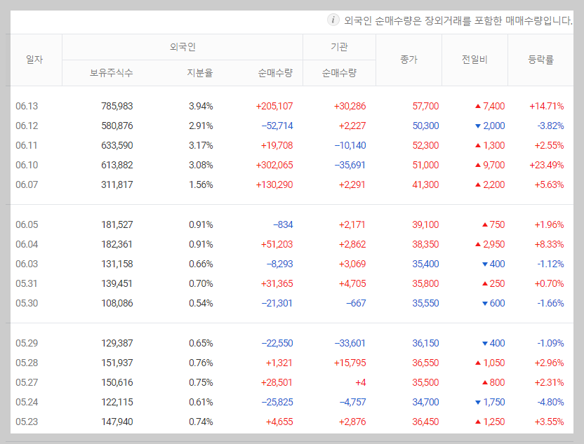 따라서 개인 투자자는 기관이나 외국인 세력을 따르고, 세력이 약해도 어떤 주식을 매수하고 매도하여 이익을 얻습니다. 최근에는 외국인보다 기관 투자자의 움직임을 따르는 것이 더 일반적이며, 외국인의 매수가 불확실하고 개인의 단기 거래가 기관과 유사하기 때문입니다.