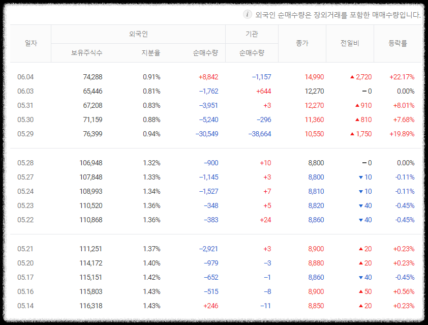 따라서 개인 투자자는 기관이나 외국인 세력을 따라가며, 세력이 약해도 어떤 주식을 매수하고 매도하여 수익을 창출합니다. 기관 투자자를 따르는 경우가 최근에 자주 발생하며, 이는 외국인 매수의 불신과 개인의 단기 거래가 기관과 유사하기 때문입니다.