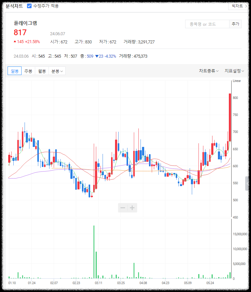 플레이그램 주가 분석